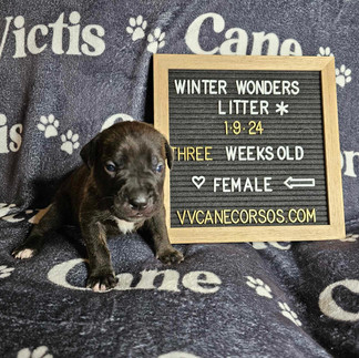 Week three has been marked by continued growth and development. We close out the week with 13 healthy pups, all of whom are walking and have completely opened their eyes. The best part? They are becoming vocal; barks, growls, whining, and howling, it’s great. Not many things match the sound of 13 Cane Corso puppies "singing" all at the same time… Cooperation from these pups is a rarity.